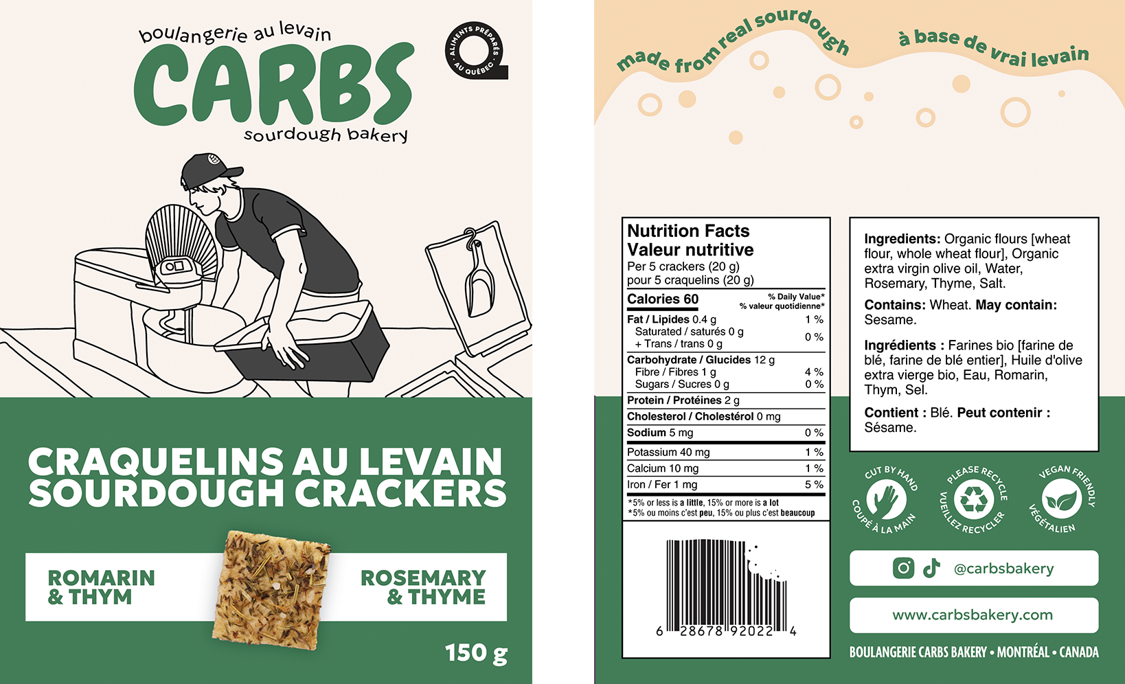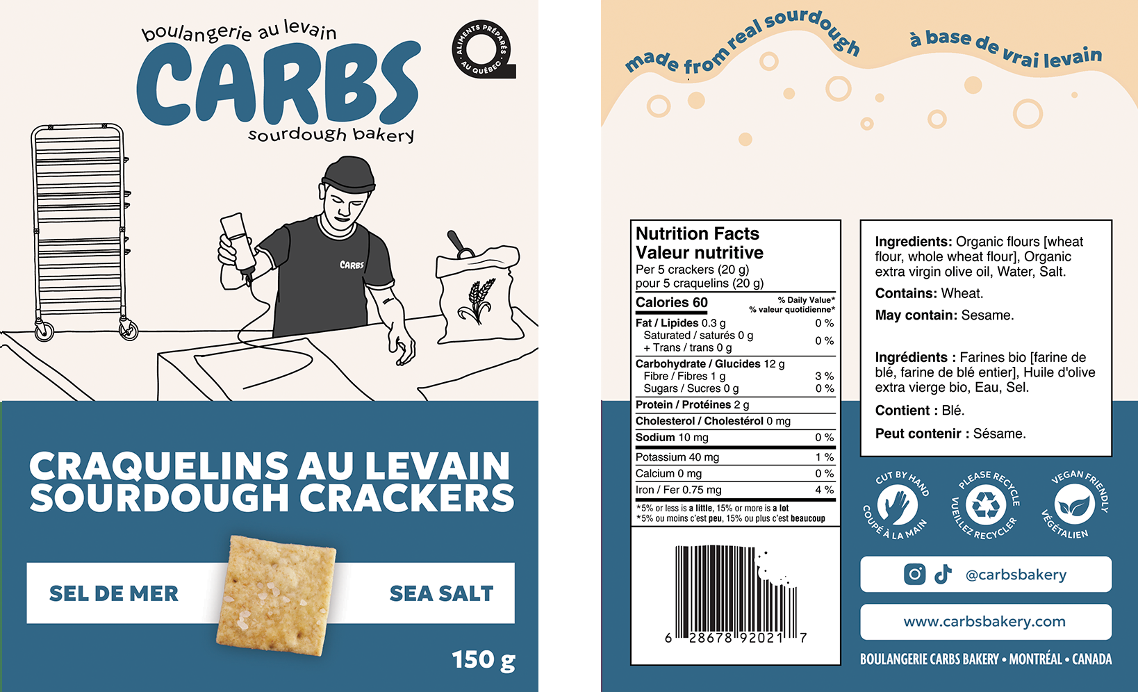 Les caisses contiennent 12 boîtes de nos craquelins au levain.